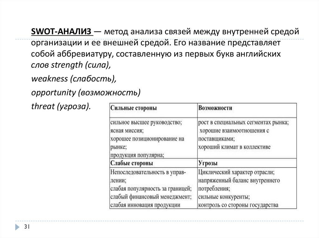 Методы анализа внутренней и внешней среды