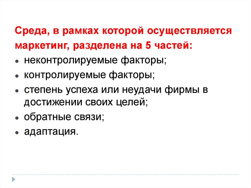 Внешняя и внутренняя среда маркетинга.