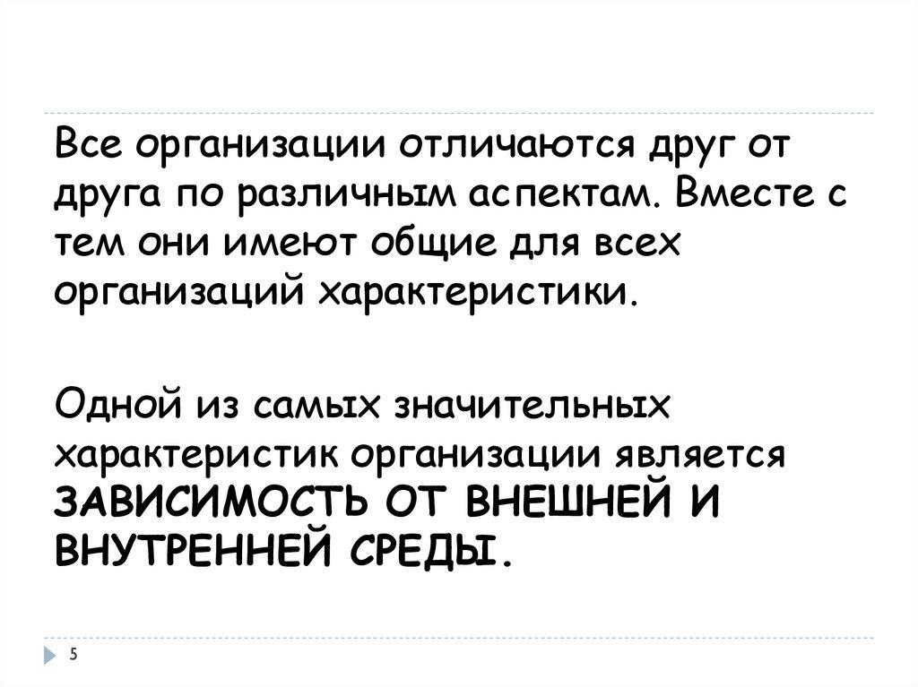 Все организации отличаются друг отдруга по различным аспектам. Вместе с