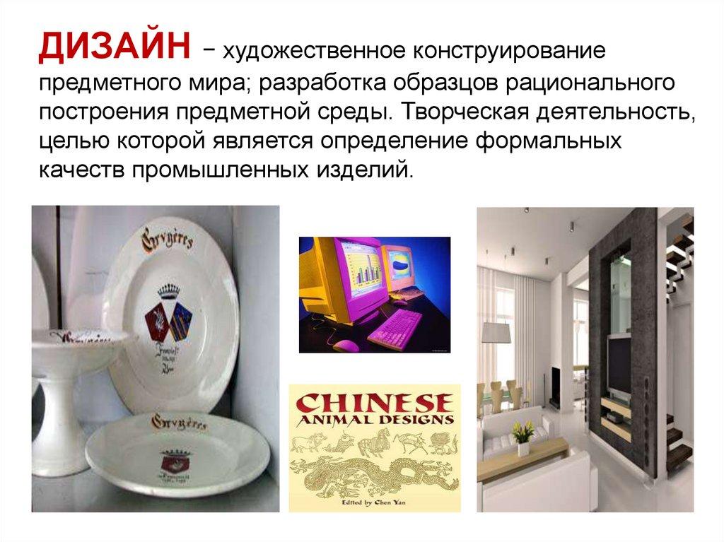 ДИЗАЙН − художественное конструированиепредметного мира; разработка образцов рационального