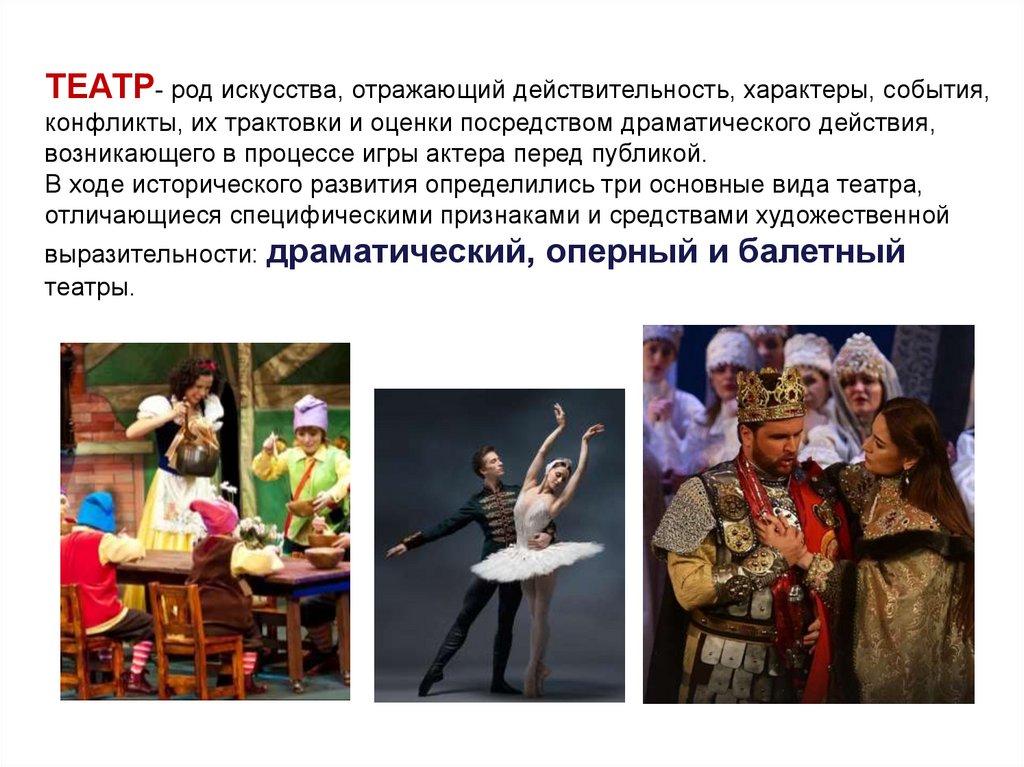 ТЕАТР- род искусства, отражающий действительность, характеры, события,конфликты, их трактовки и оценки посредством драматического действия,
