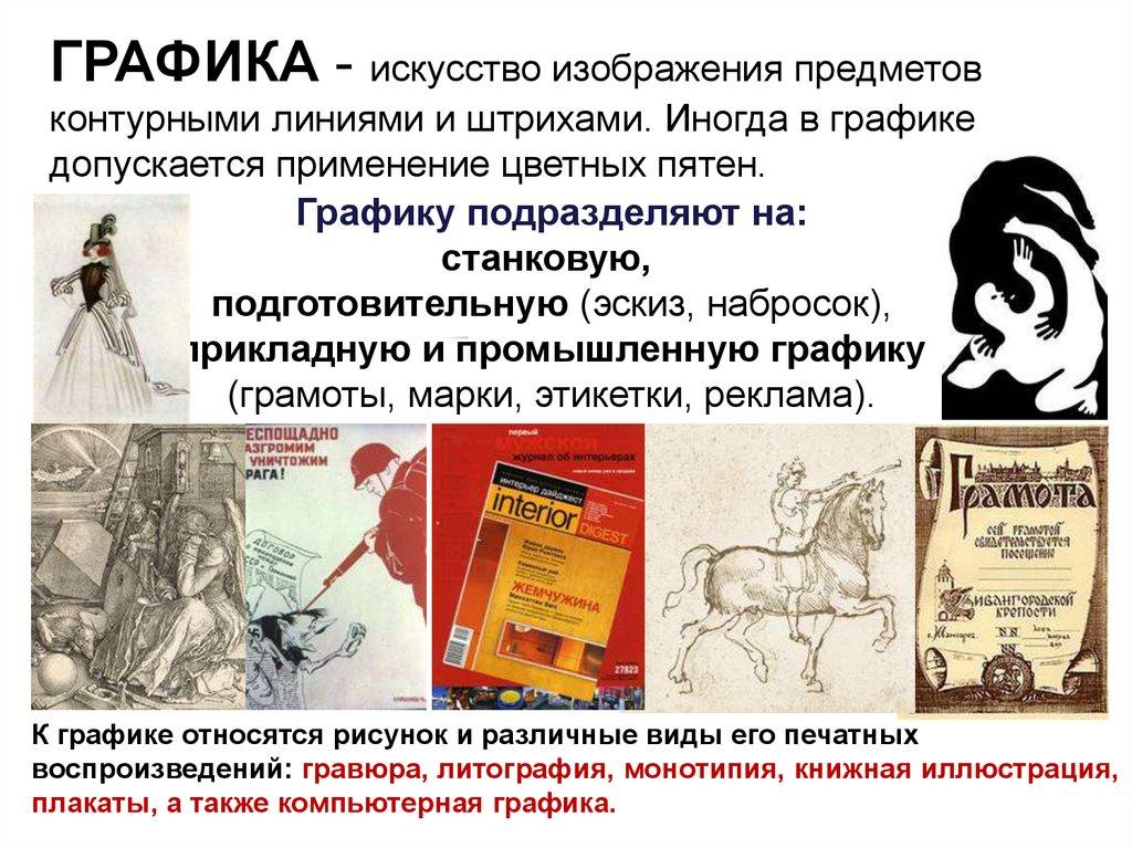 ГРАФИКА - искусство изображения предметовконтурными линиями и штрихами. Иногда в графике