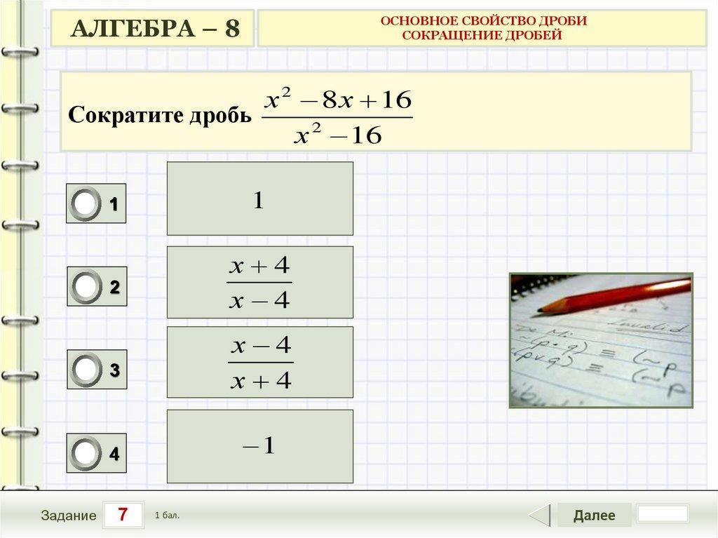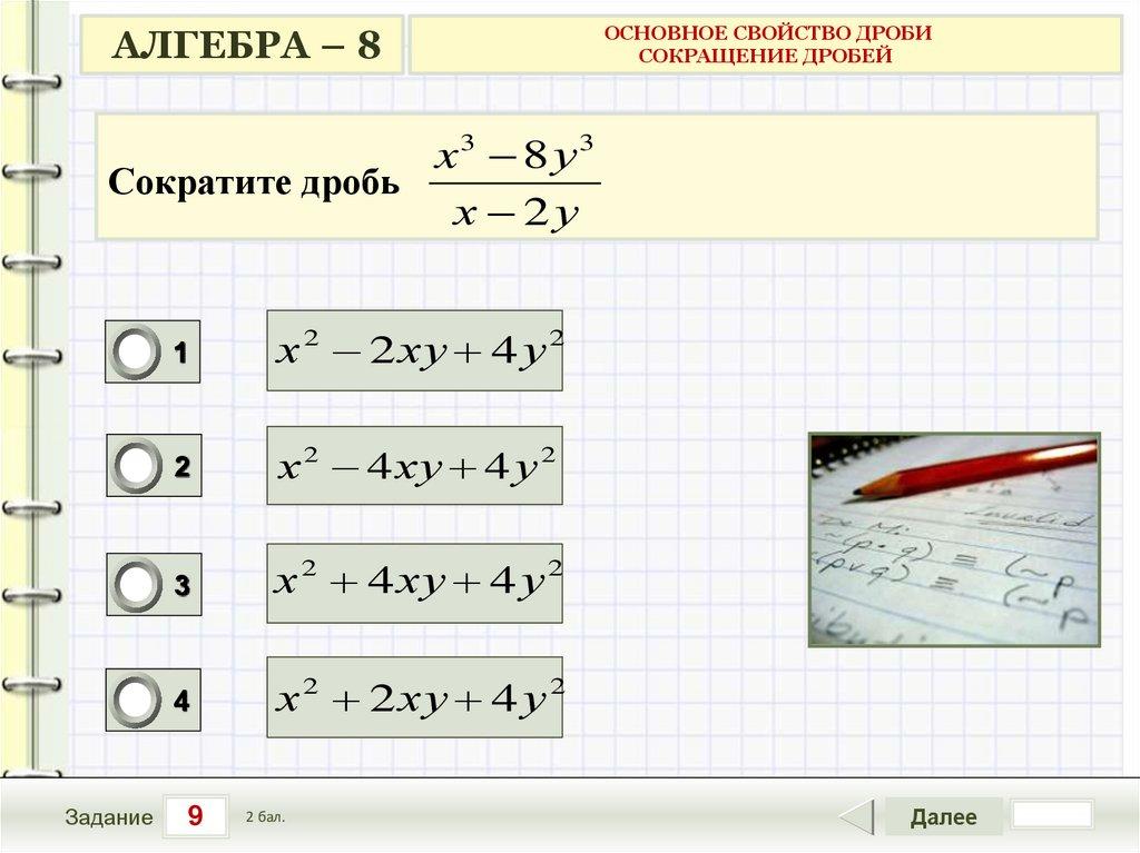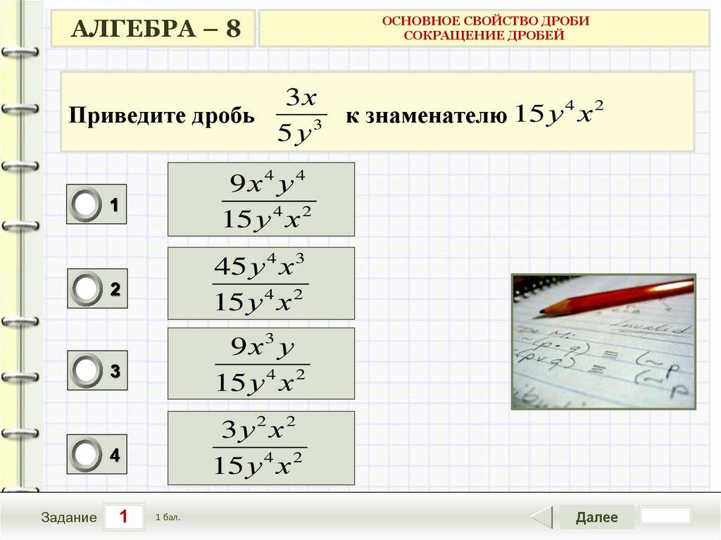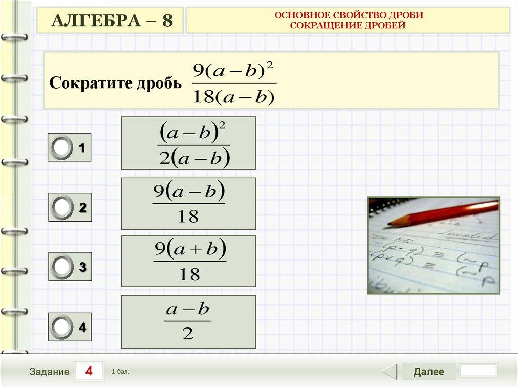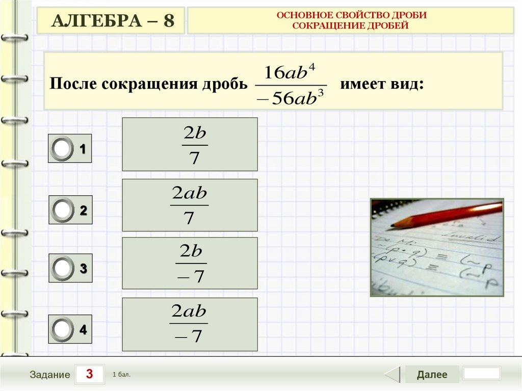 АЛГЕБРА – 8ОСНОВНОЕ СВОЙСТВО ДРОБИ