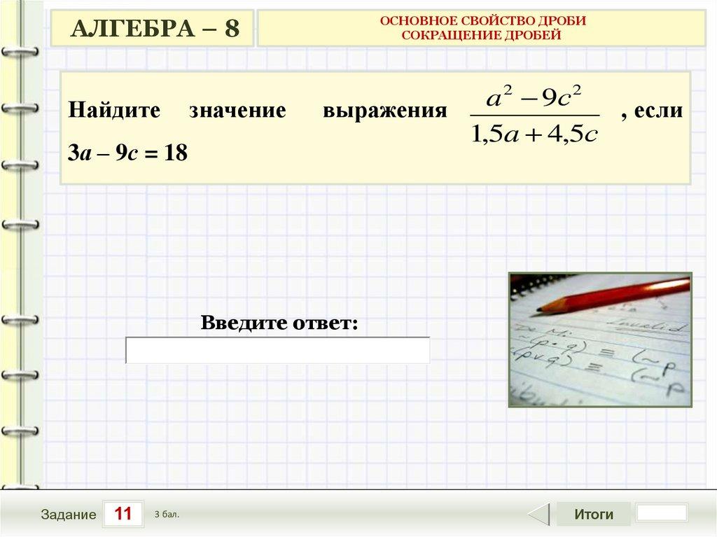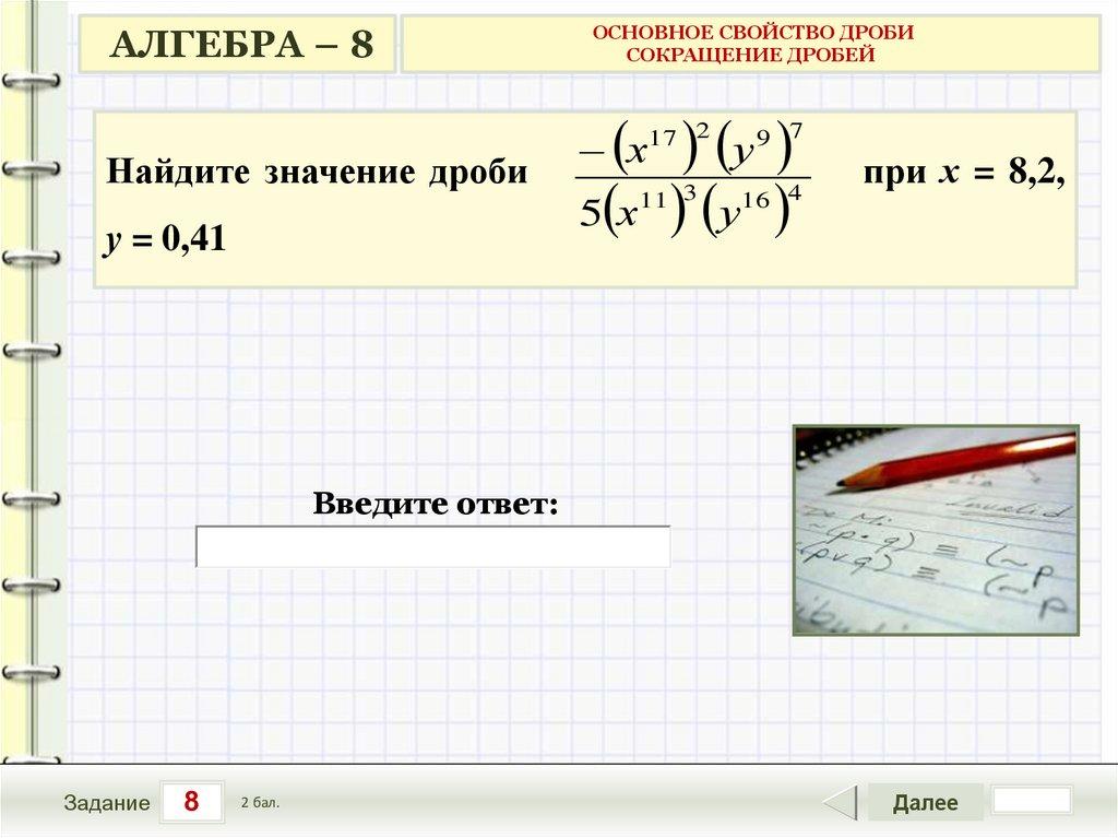 АЛГЕБРА – 8Найдите значение дроби