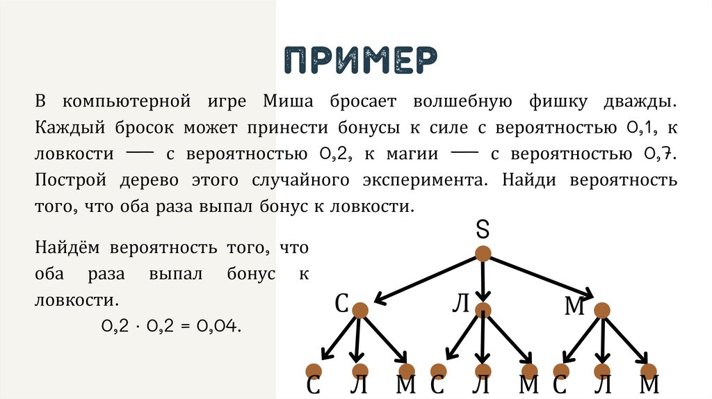 примерВ компьютерной игре Миша бросает волшебную фишку дважды.
