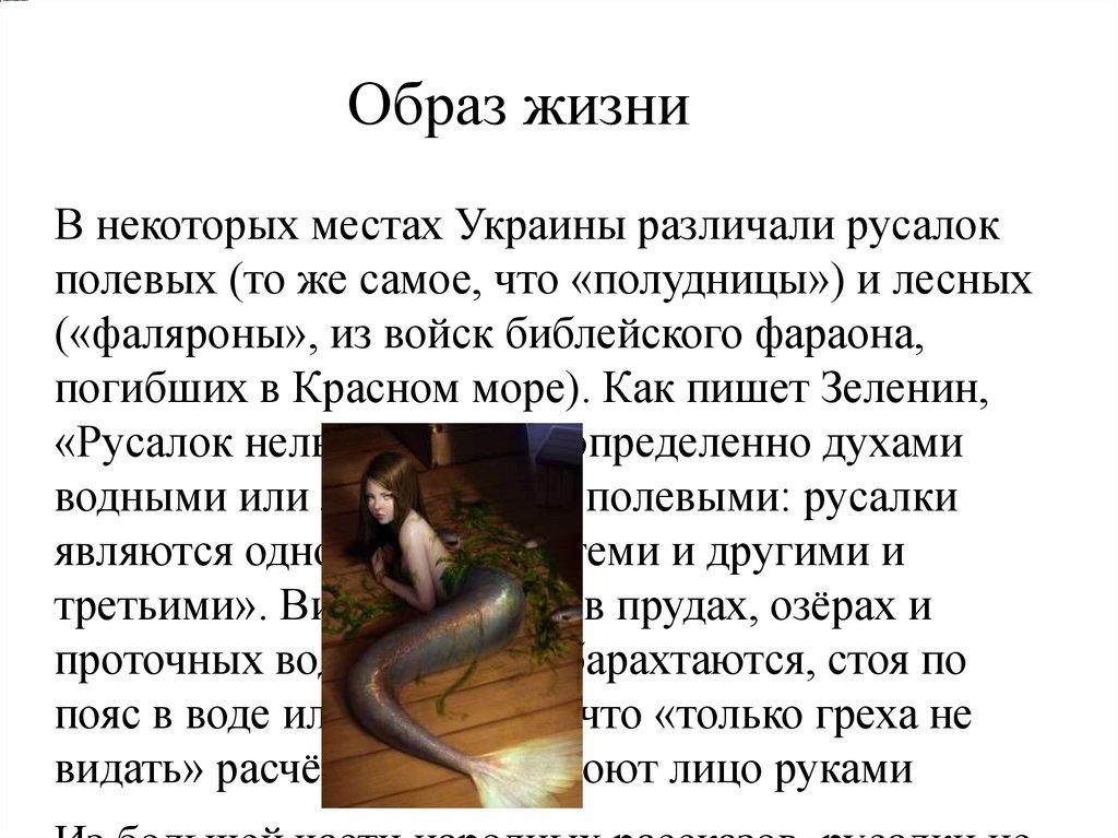 Образ жизниВ некоторых местах Украины различали русалок