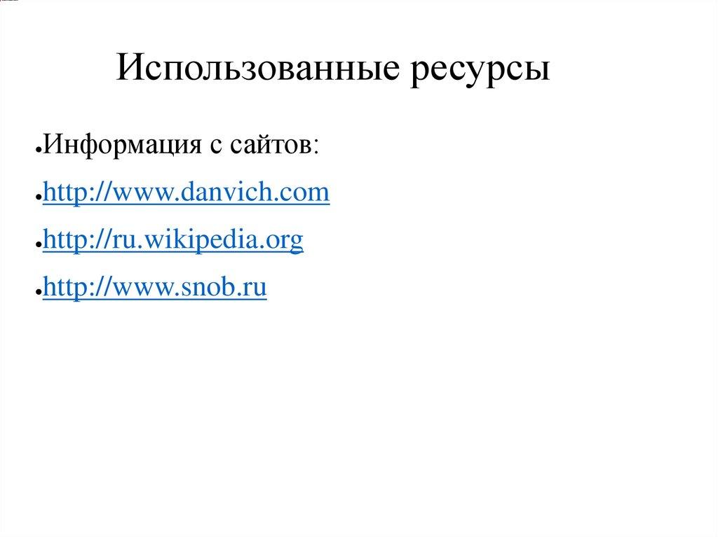Использованные ресурсыИнформация с сайтов: