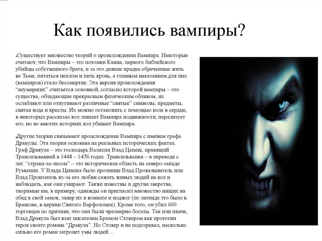 Как появились вампиры?Существует множество теорий о происхождении Вампира. Некоторые