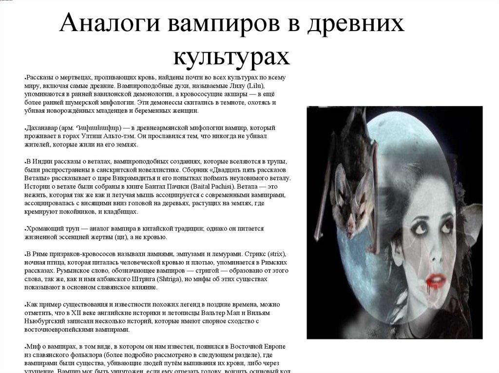 Аналоги вампиров в древнихкультурах