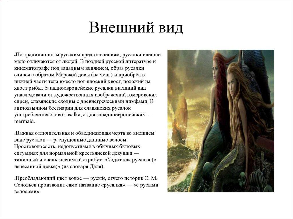 Внешний видПо традиционным русским представлениям, русалки внешне