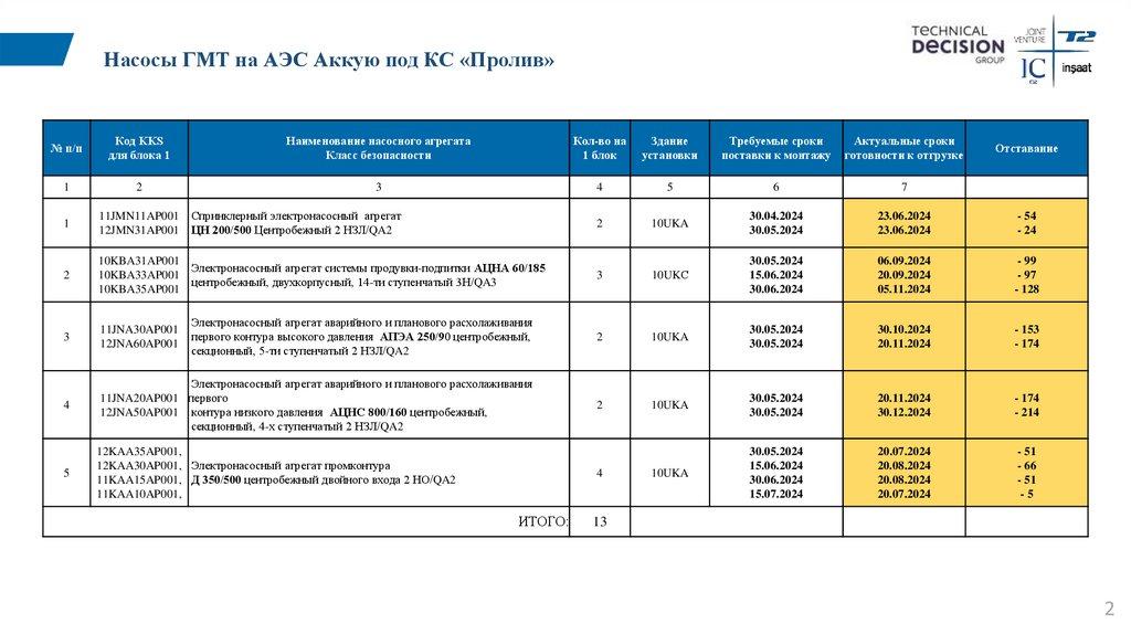 Насосы ГМТ на АЭС Аккую под КС «Пролив»№ п/п