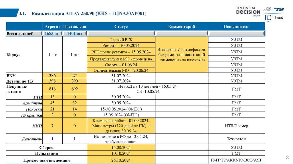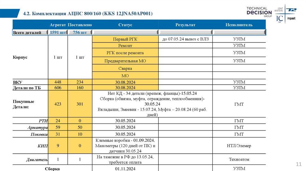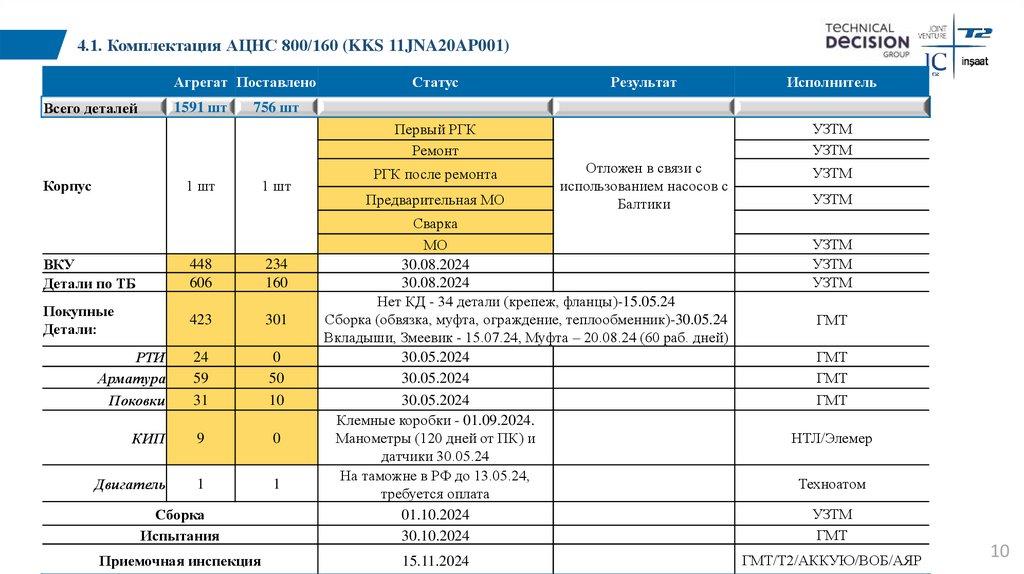 4.1. Комплектация АЦНС 800/160 (KKS 11JNA20AP001)Агрегат Поставлено