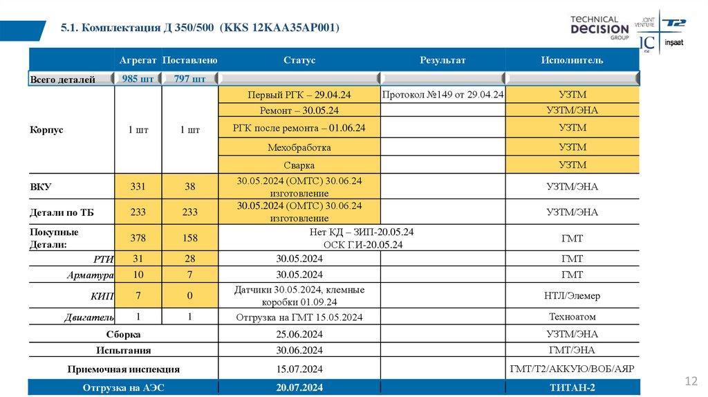 5.2. Комплектация Д 350/500 (KKS 12KAA30AP001)Агрегат Поставлено