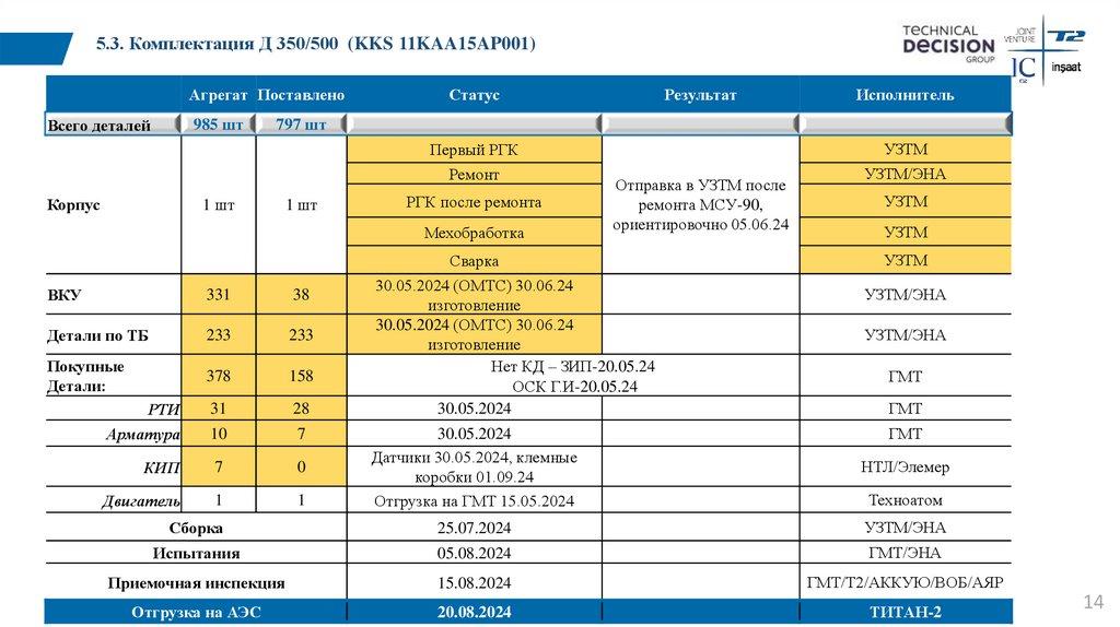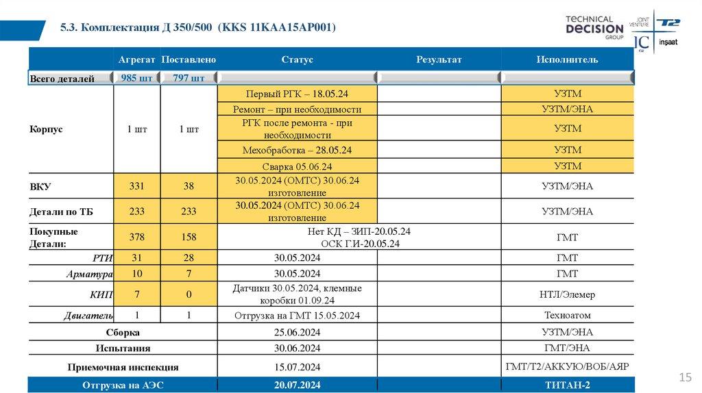 5.3. Комплектация Д 350/500 (KKS 11KAA15AP001)Агрегат Поставлено