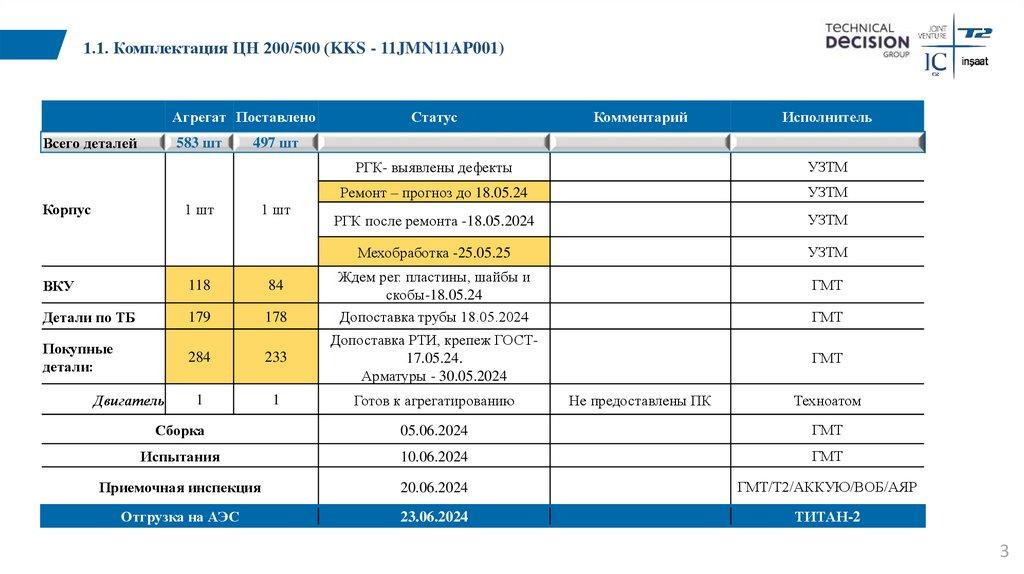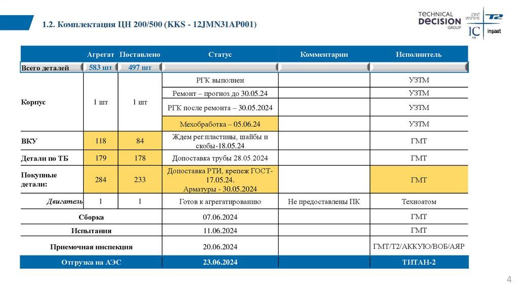 1.1. Комплектация ЦН 200/500 (KKS - 11JMN11AP001)Агрегат Поставлено