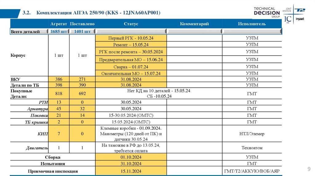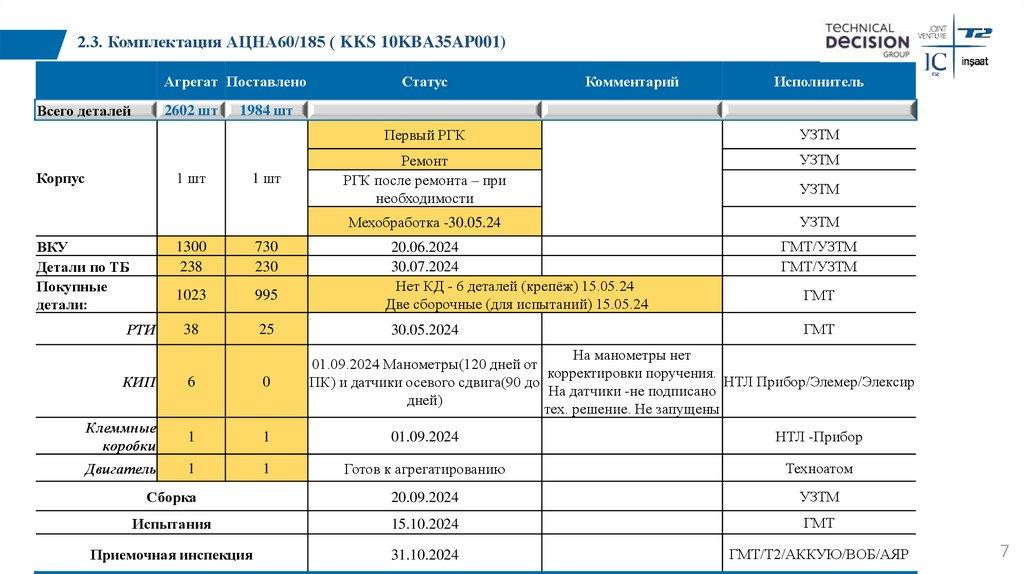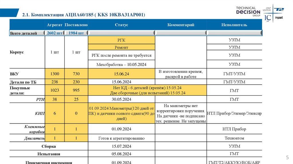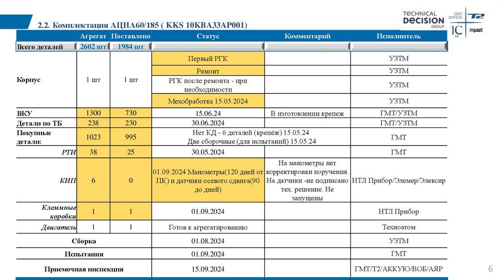 4.2. Комплектация АЦНС 800/160 (KKS 12JNA50AP001)Агрегат Поставлено