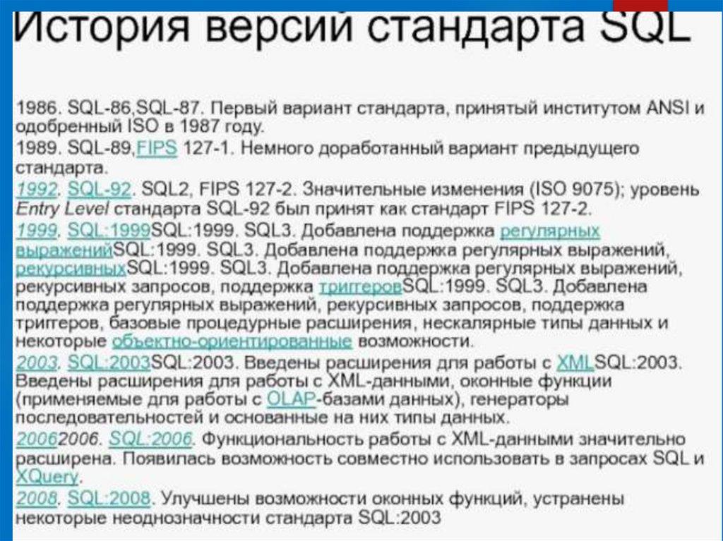 SQL11986 год первый стандарт ANSI и
