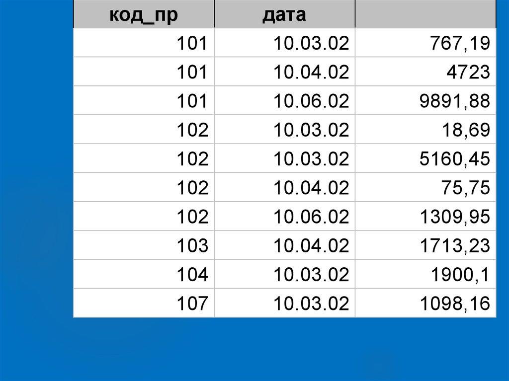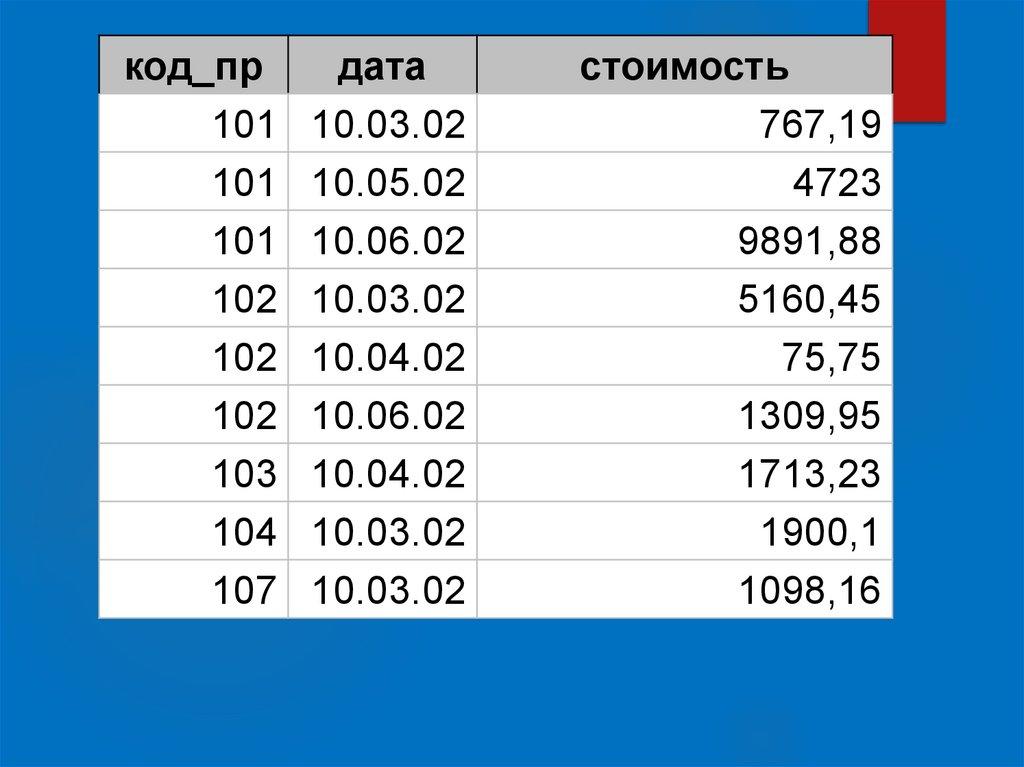 WHERE код_пр=