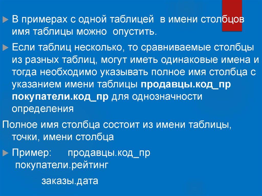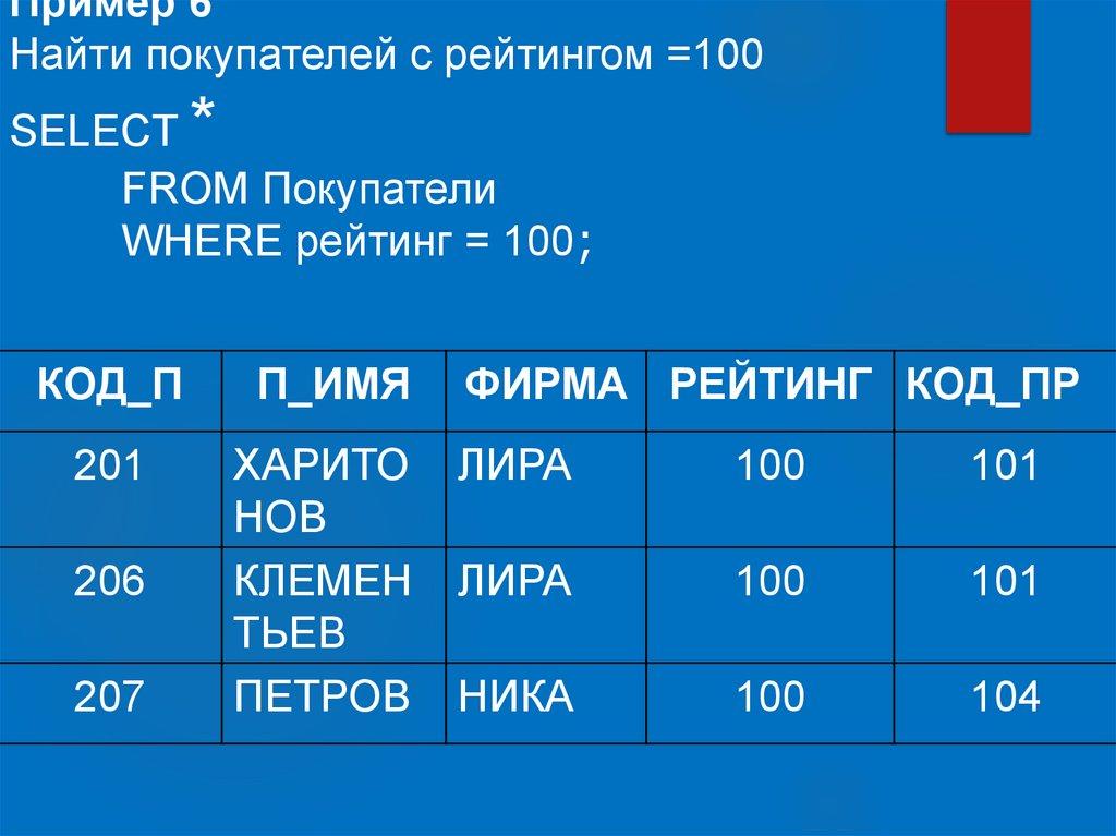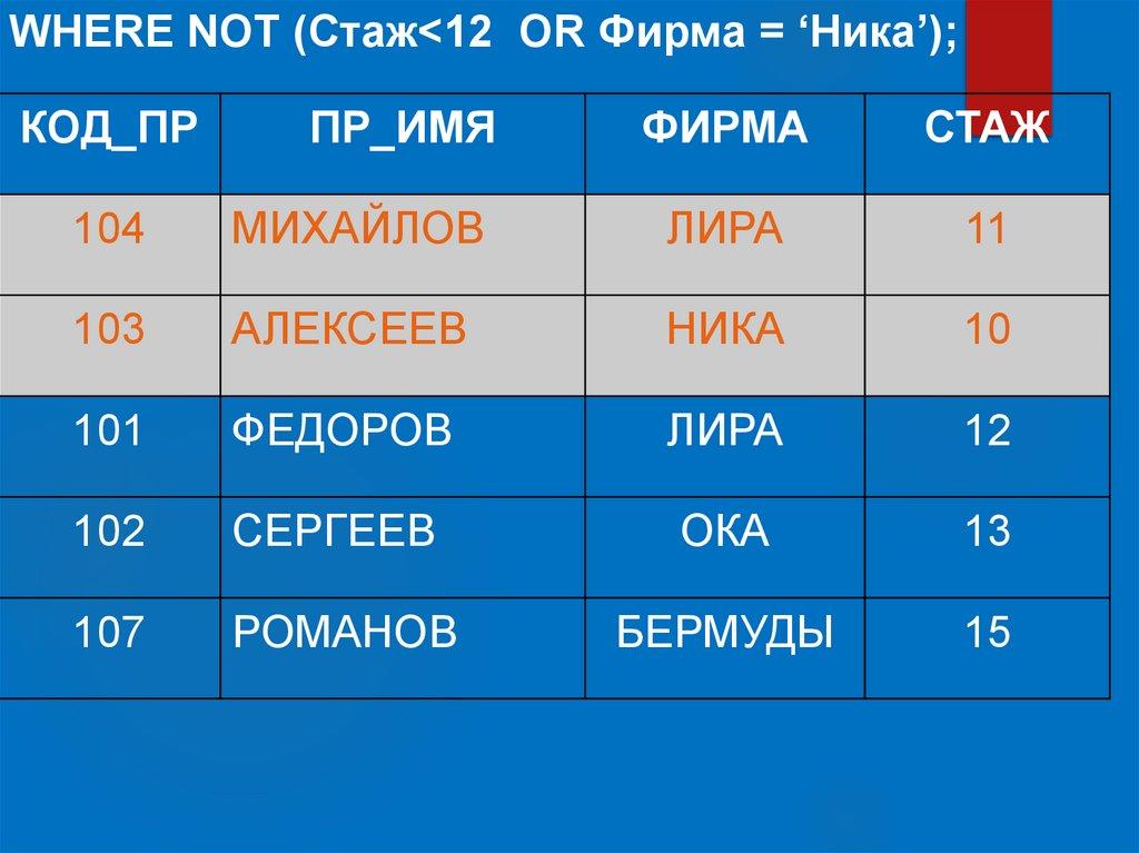 оператор (например IN ), то запрос может возвращать любое