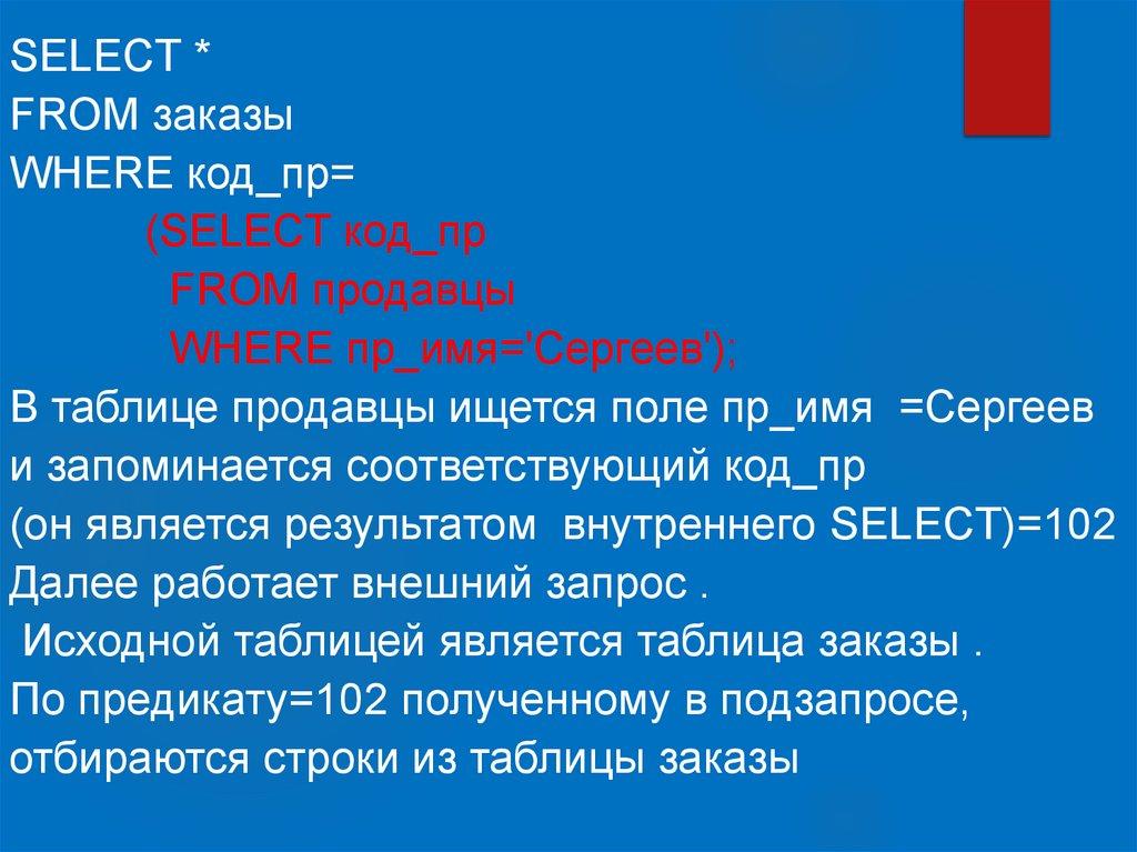 (он является результатом внутреннего SELECT)=102