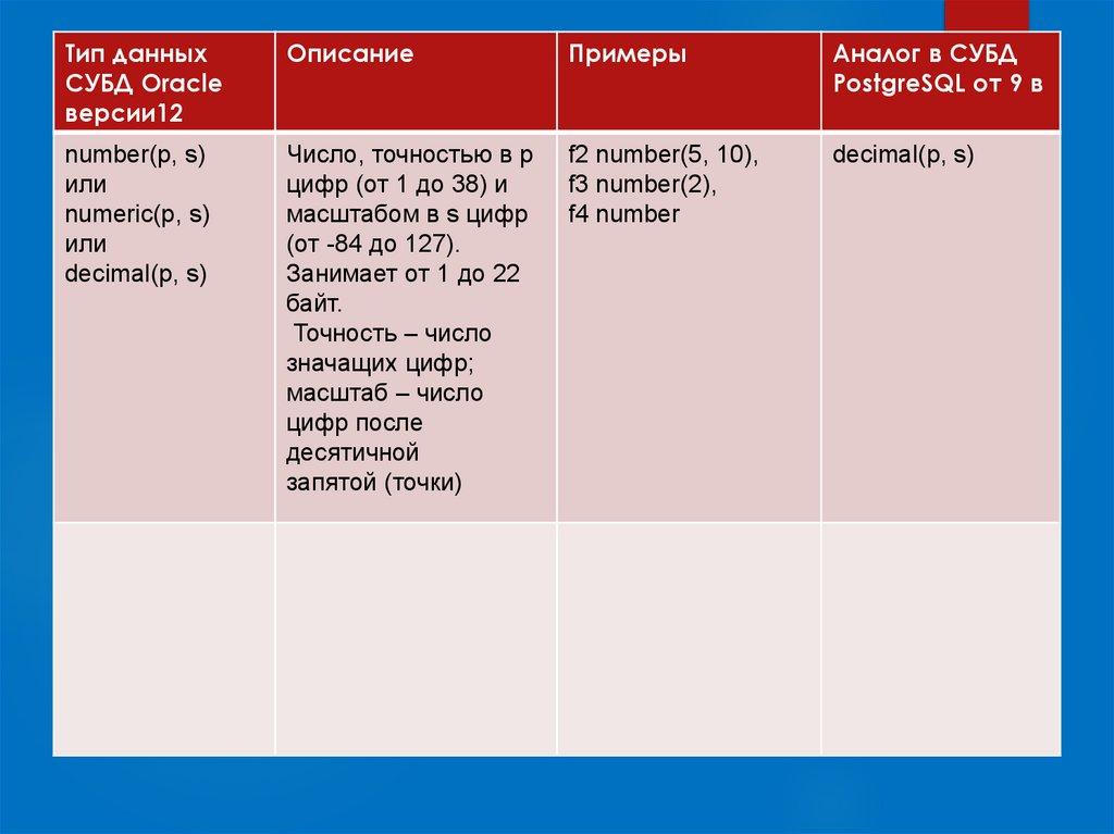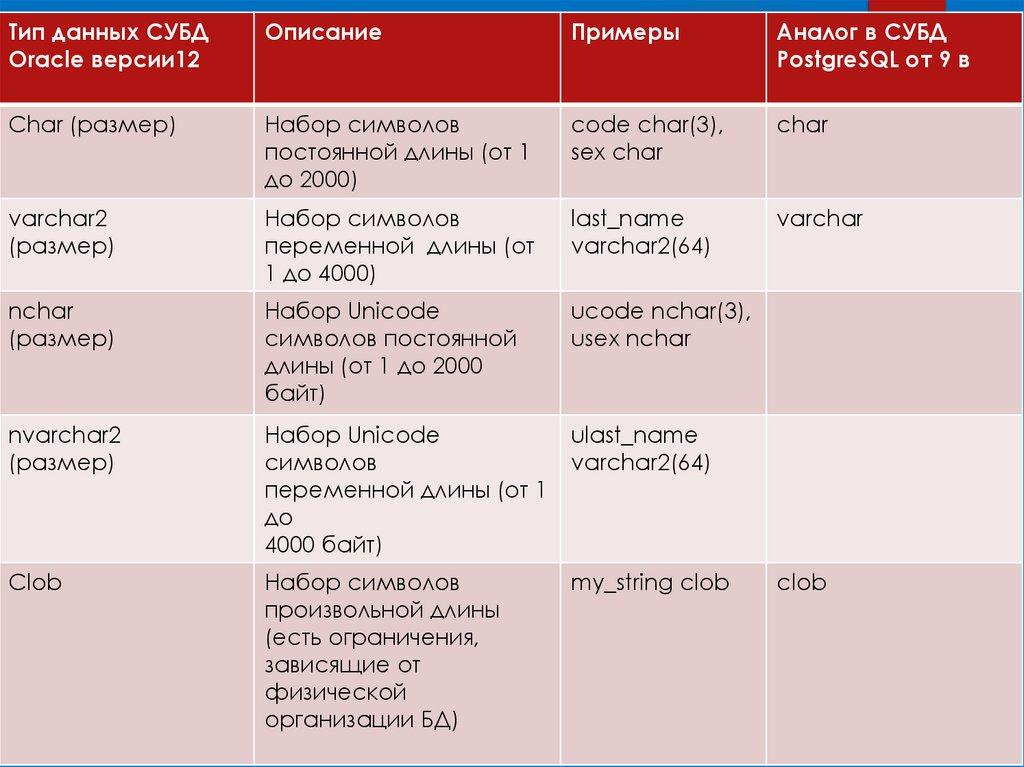 12. ТИПЫ ДАННЫХ ЯЗЫКА SQL