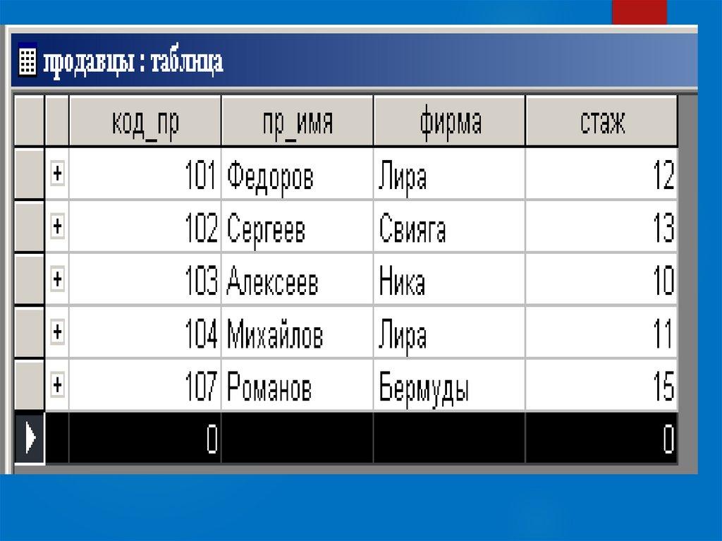 В таблице продавцы ищется поле пр_имя =Сергеев