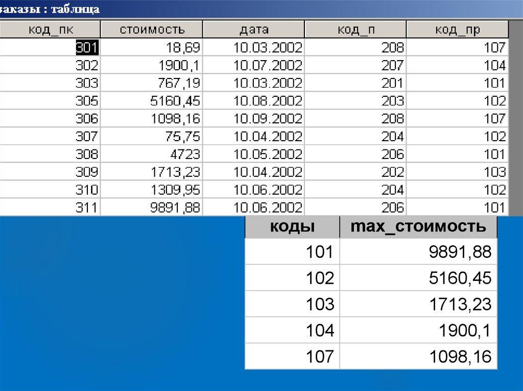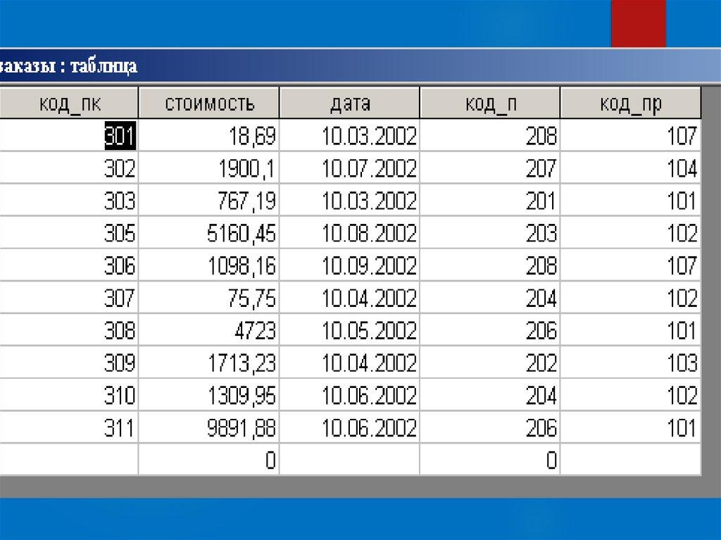 Исходной таблицей является таблица заказы .
