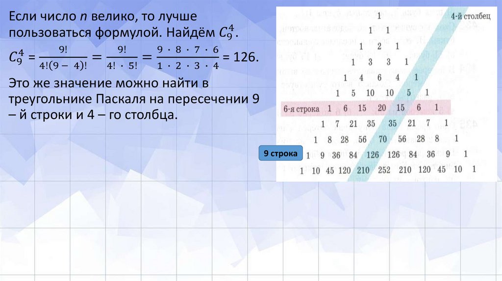 Треугольник Паскаля. Число сочетаний