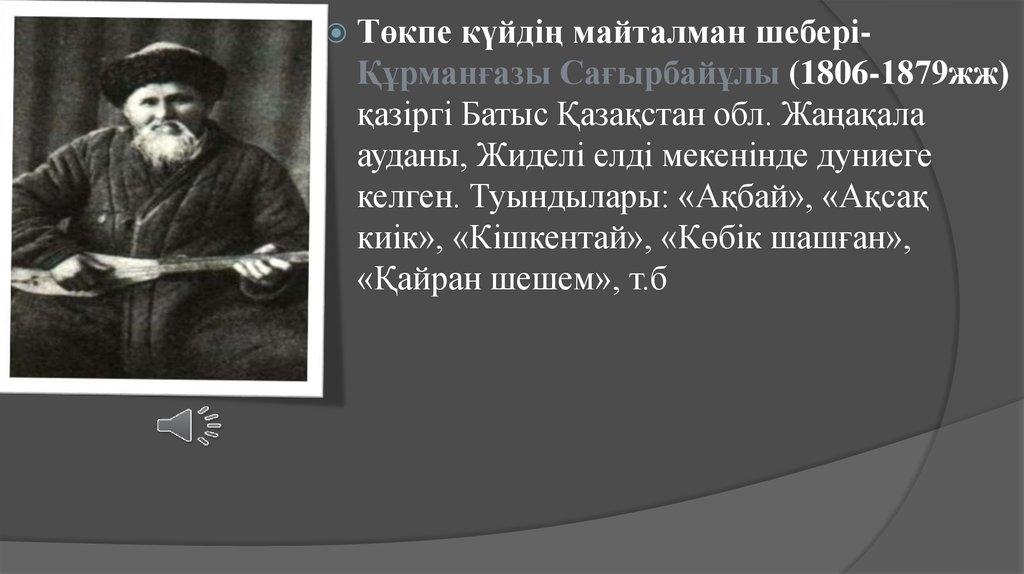 Төкпекүйдің майталман шеберіҚұрманғазы Сағырбайұлы (1806-1879жж)