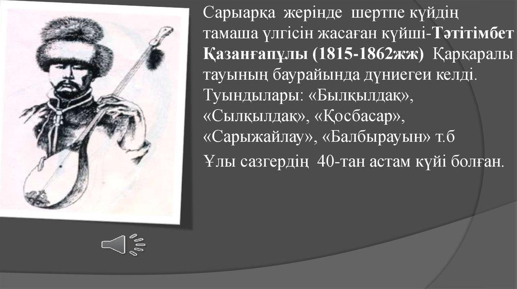 Сарыарқа жерінде шертпе күйдіңтамаша үлгісін жасаған күйші-Тәтітімбет