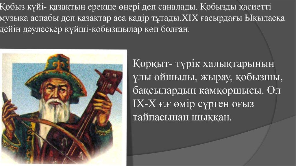 Қылқобыз – қазақ халқының ұлттықаспаптарының ішіндегі ең көне аспап. 9 - 10