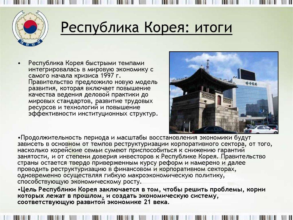 22. Республика Корея: итоги
