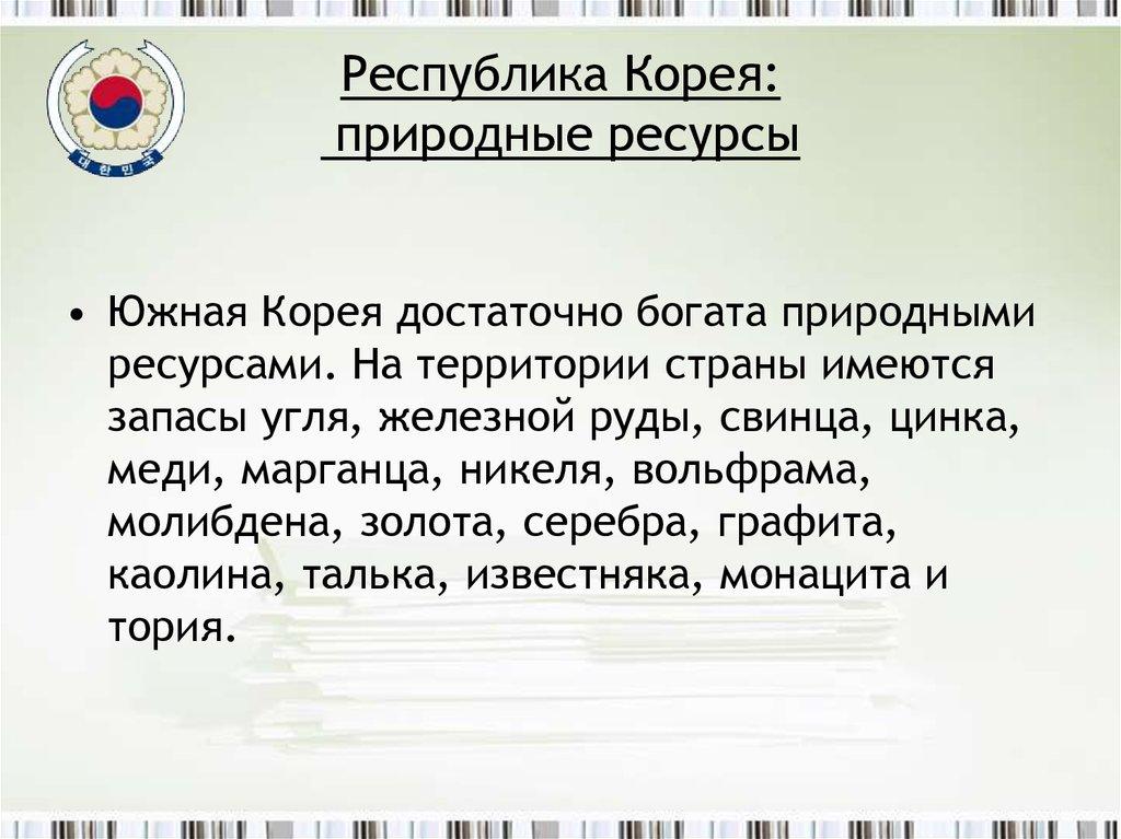 4. Республика Корея: природные ресурсы
