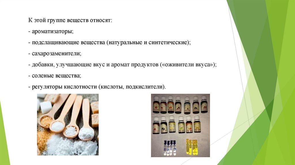 Вещества, влияющие на органолептические показатели пищевых продуктов