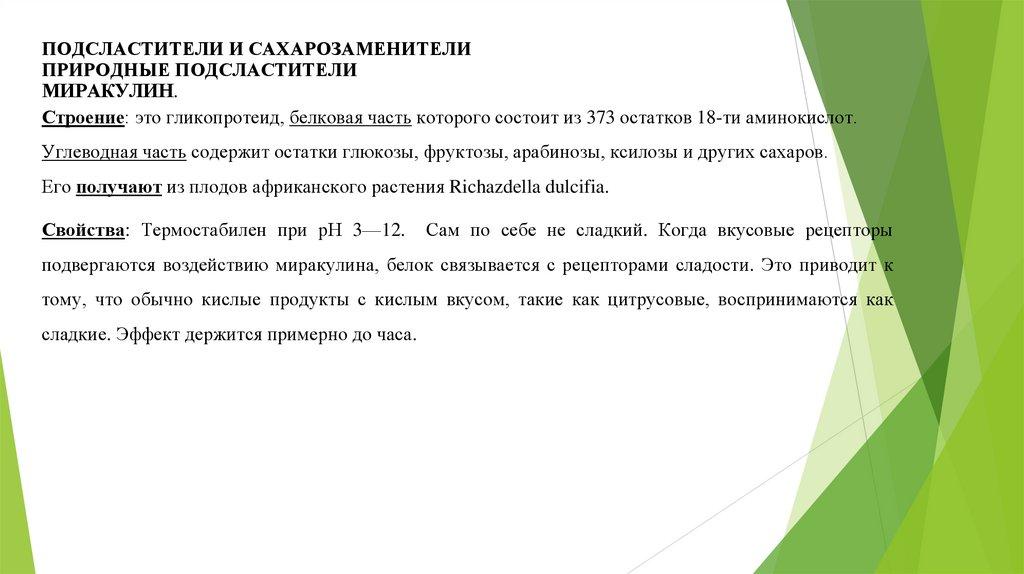 кислоте. Обладают энергетической ценностью 2,4 ккал/г (энергетическая ценность сахарозы 4 ккал/г).