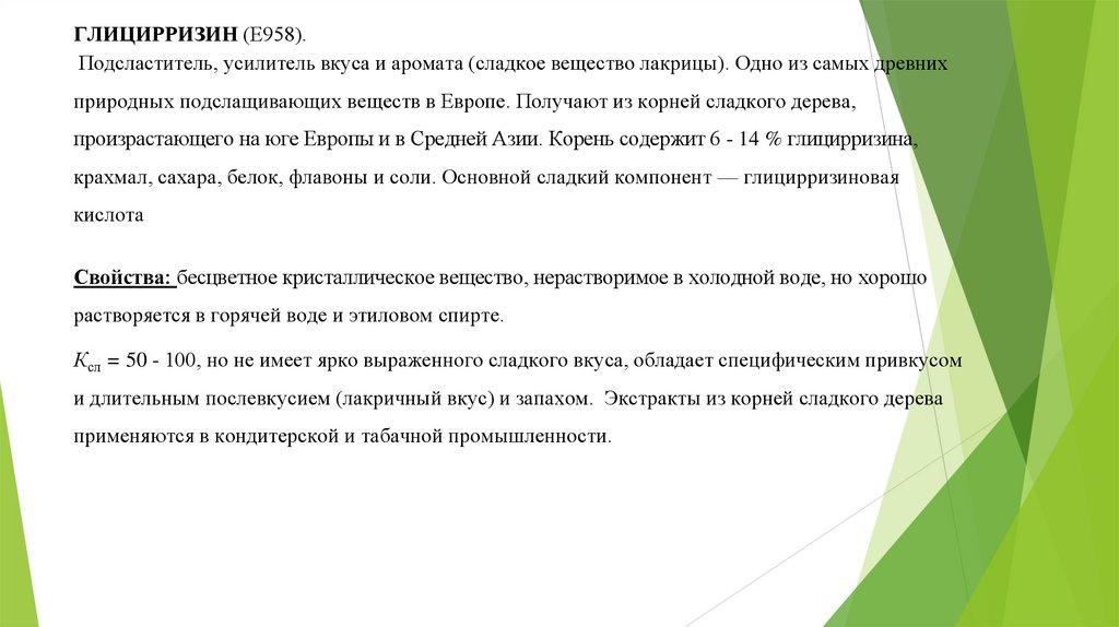 и длительным послевкусием (лакричный вкус) и запахом. Экстракты из корней сладкого дерева
