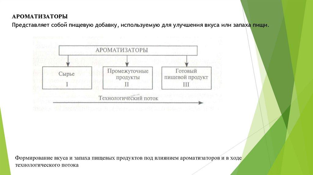 АРОМАТИЗАТОРЫПредставляет собой пищевую добавку, используемую для улучшения вкуса или запаха пищи.