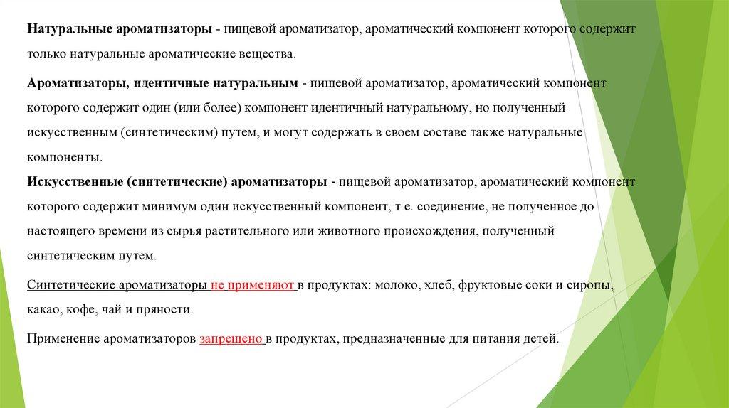 Применение ароматизаторов запрещено в продуктах, предназначенные для питания детей.