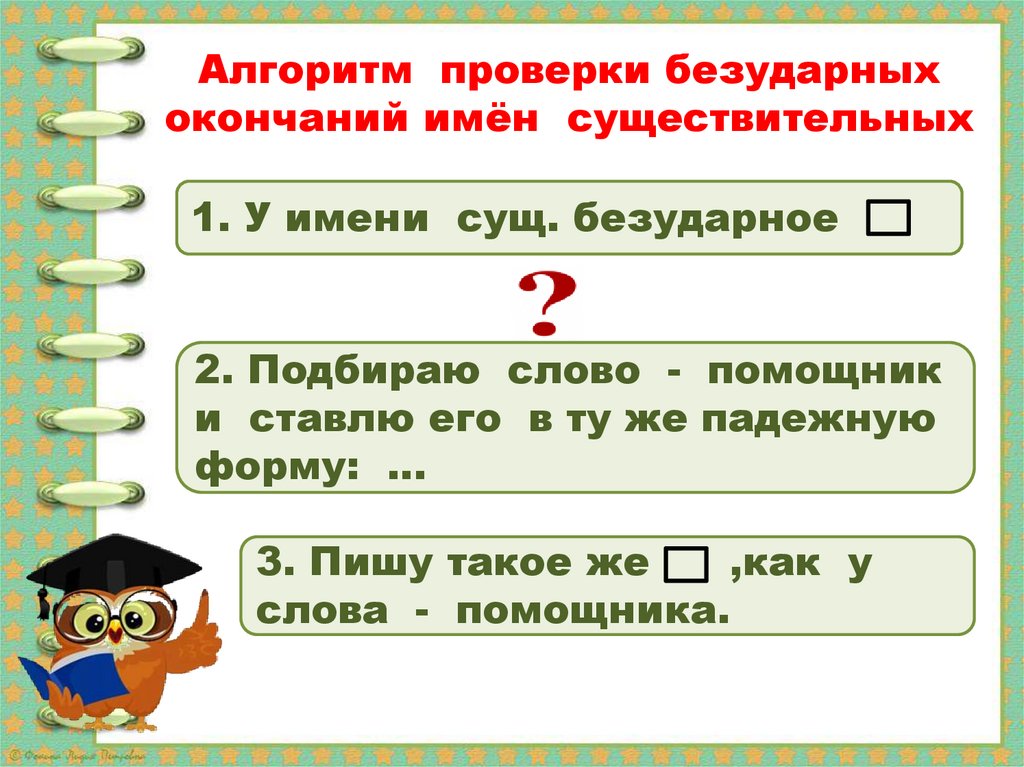 Алгоритм проверки безударныхокончаний имён существительных