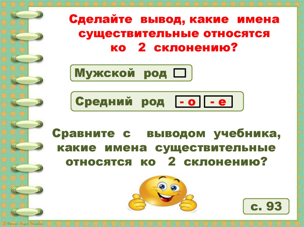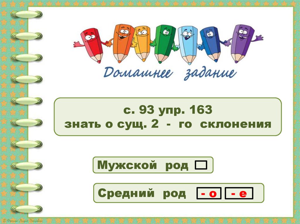 с. 93 упр. 163знать о сущ. 2 - го склонения