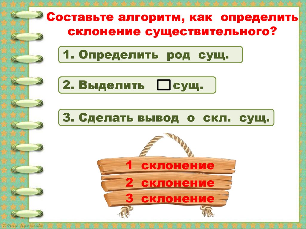 Составьте алгоритм, как определитьсклонение существительного?