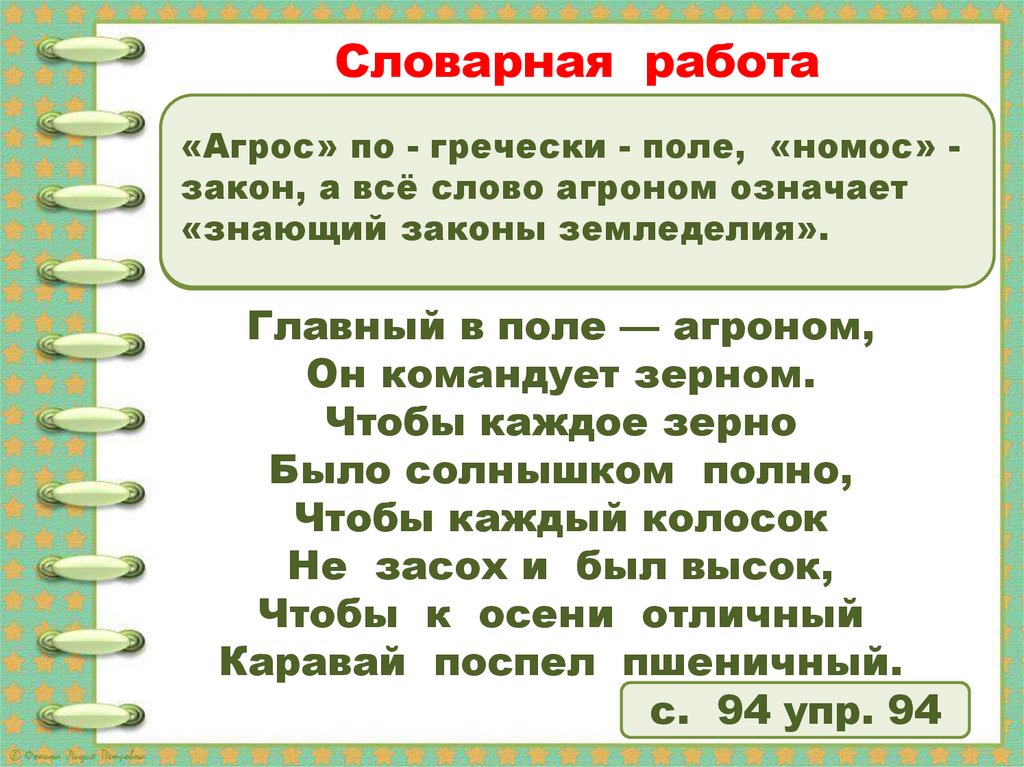Словарная работаАгроном - специалист по