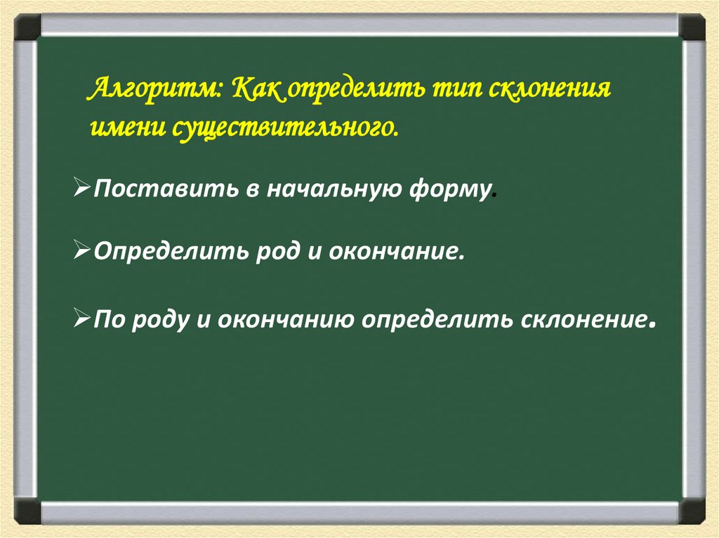 Алгоритм: Как определить тип склоненияимени существительного.