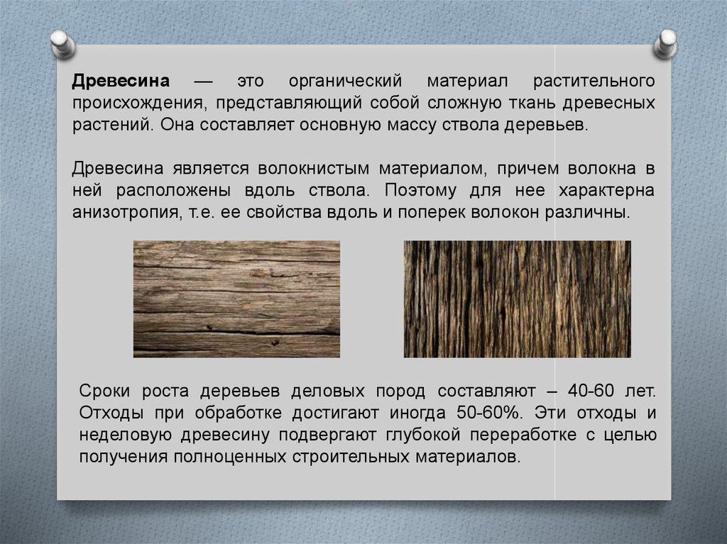 Древесина — это органический материал растительногопроисхождения, представляющий собой сложную ткань древесных