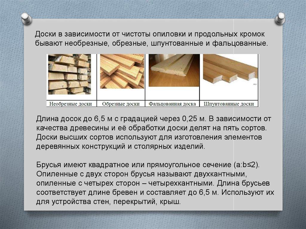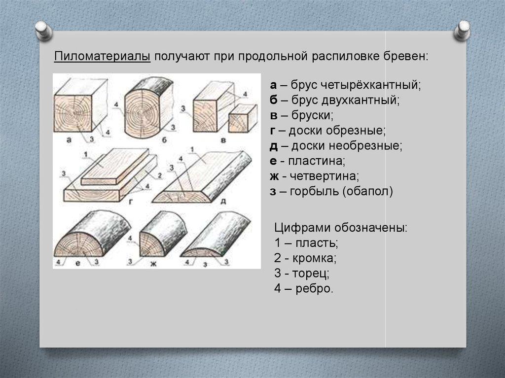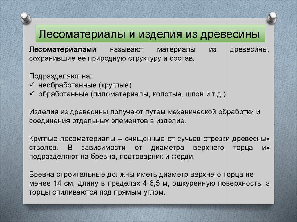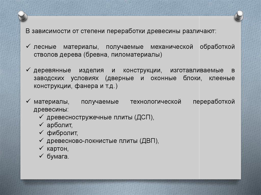 В зависимости от степени переработки древесины различают:лесные материалы, получаемые механической