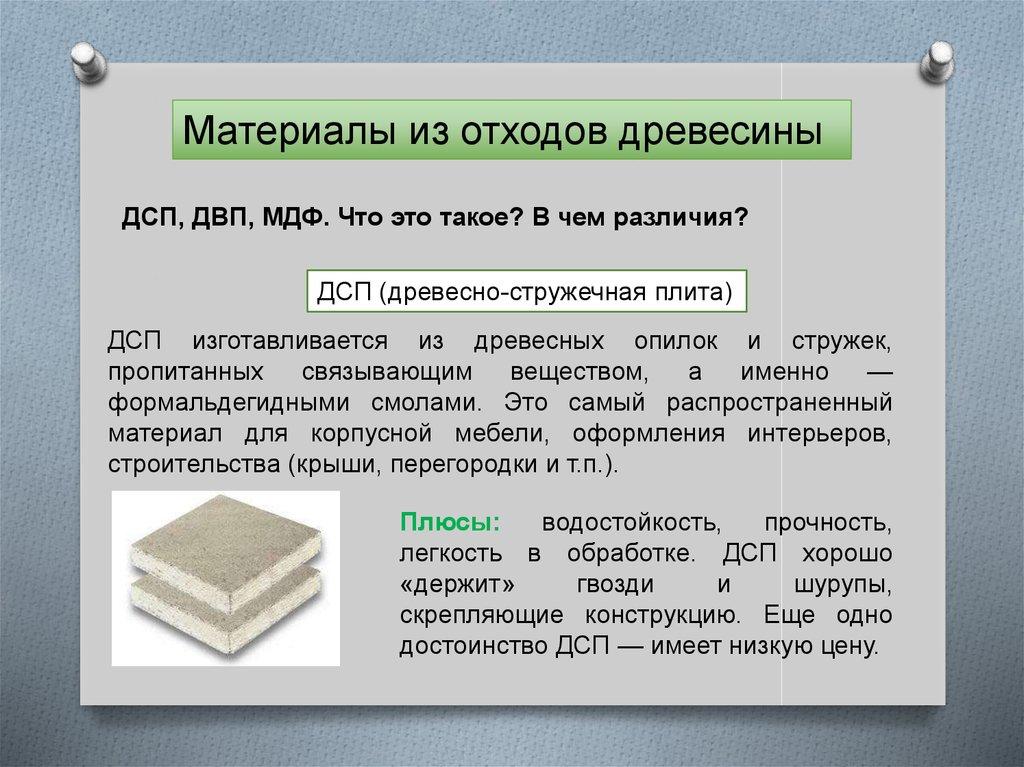 Материалы из отходов древесиныДСП (древесно-стружечная плита)