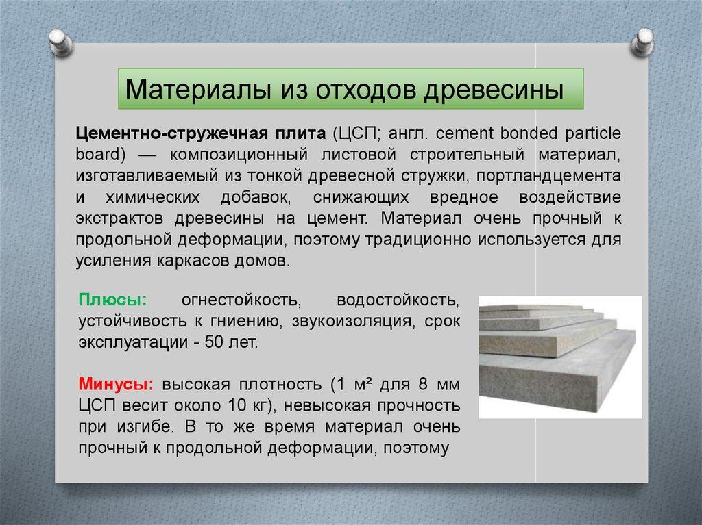 Материалы из отходов древесиныЦементно-стружечная плита (ЦСП; англ. cement bonded particle