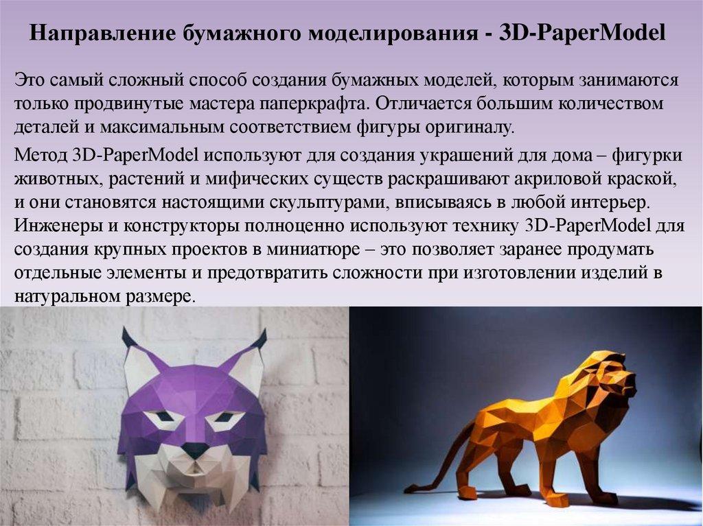 Направление бумажного моделирования - 3D-PaperModelЭто самый сложный способ создания бумажных моделей, которым занимаются