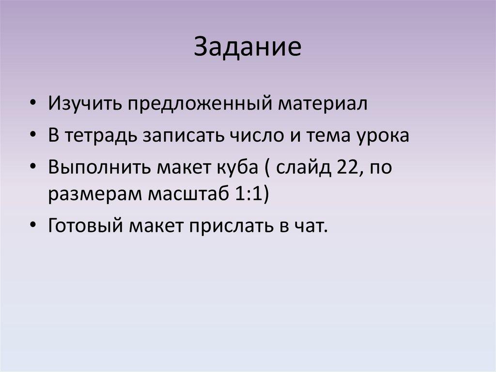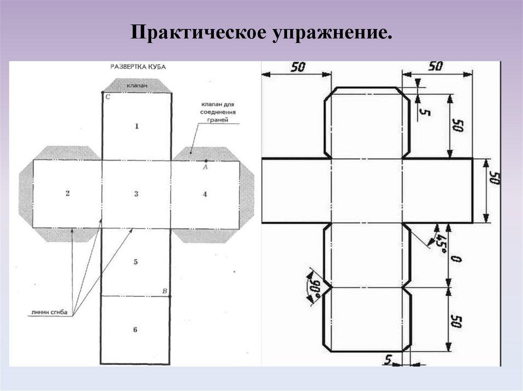 • Выполнить макет куба ( слайд 22, по