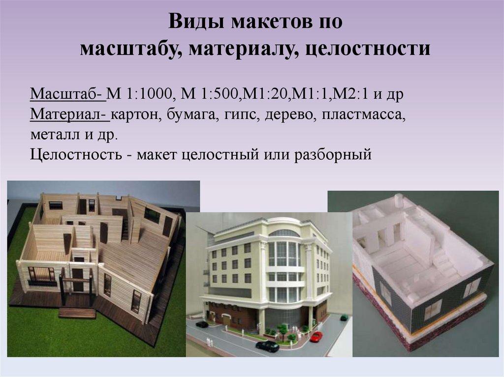 Виды макетов помасштабу, материалу, целостности